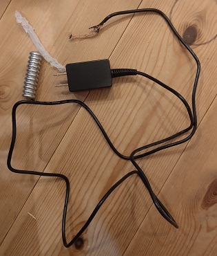 齧り対策用のコイルチューブをケージの中に引っ張って、さらにコードまで齧り切っておりました!