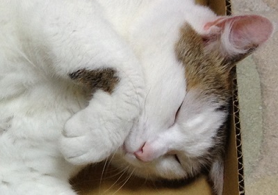 ↑猫は囲いを作ってあげるとその中に入って安心する習性があります。