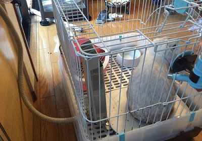 外に出て、コードを見つけたうさちゃんは、早速齧って、断線させてしまいました。
