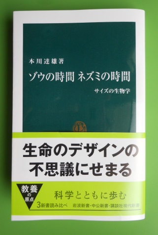 この速さを、動物生理学の本川達雄理学博士が、ゾウもネズミも一生の心拍数は同じく20億回だということを『ゾウの時間ネズミの時間』という著書(下記の写真)で説明しています。