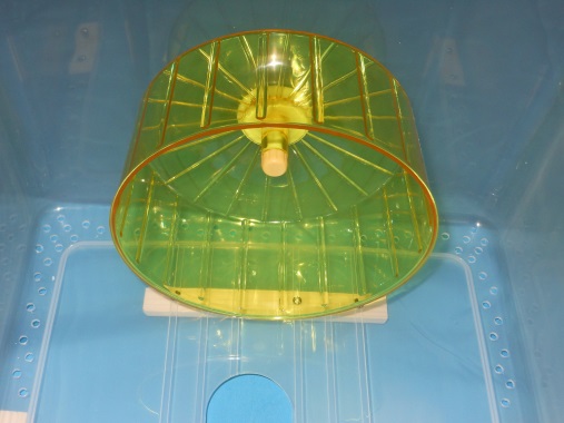 ●回し車をケースの壁面に取り付ける理由は、ケースの床を広く使わせてあげるためです。また、回し車が安定して回る効果もあります。