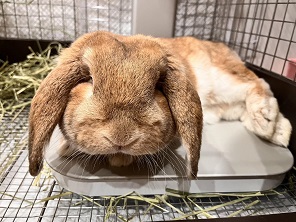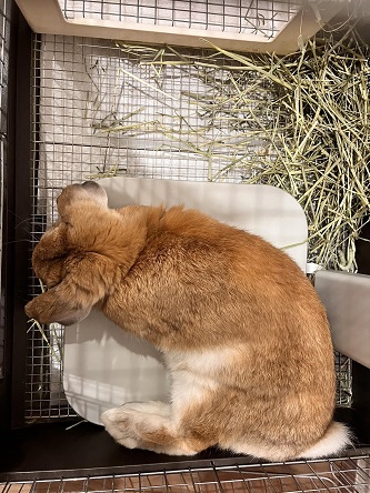 ペットのクーラーPC-350で涼むウサギのこはく君